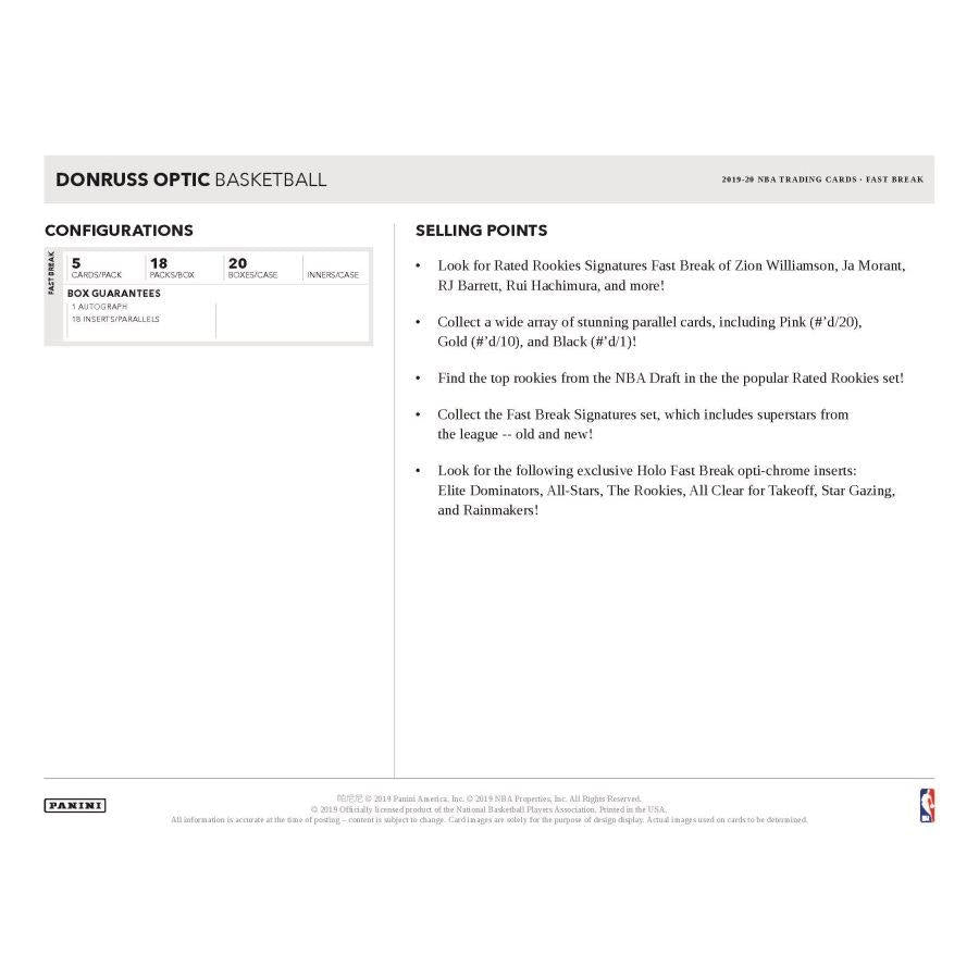 2019-20 Donruss Optic NBA Basketball Cards PRODUCT HIGHLIGHTS: