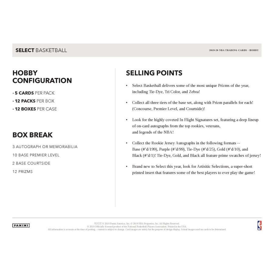 2019-20 Panini Select NBA Basketball Cards PRODUCT HIGHLIGHTS:
