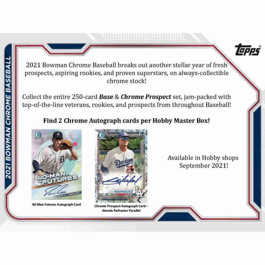 2021 Bowman Chrome Baseball breaks out another stellar year of fresh prospects, aspiring rookies, and proven superstars, on always-collectible chrome stock!
