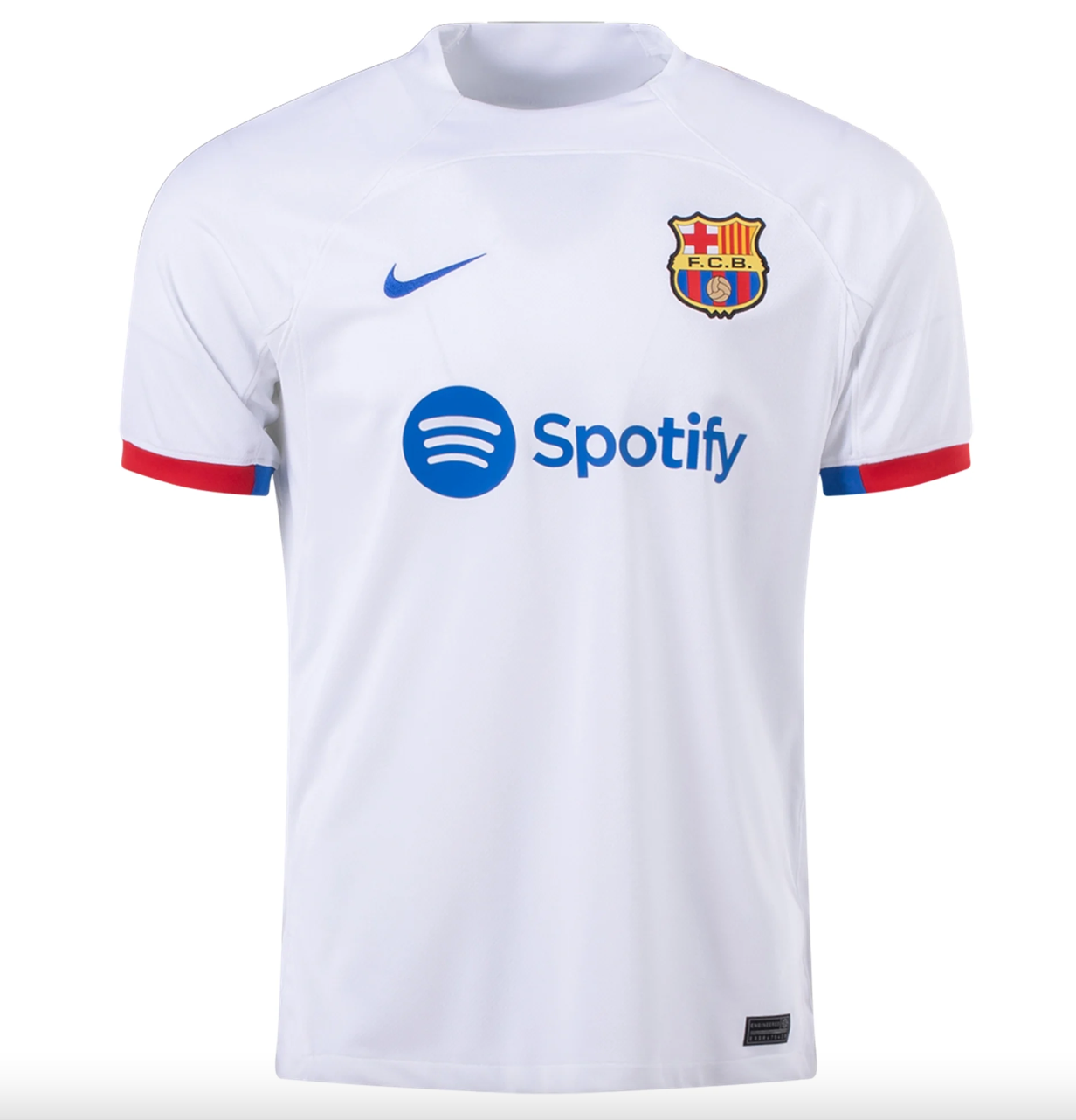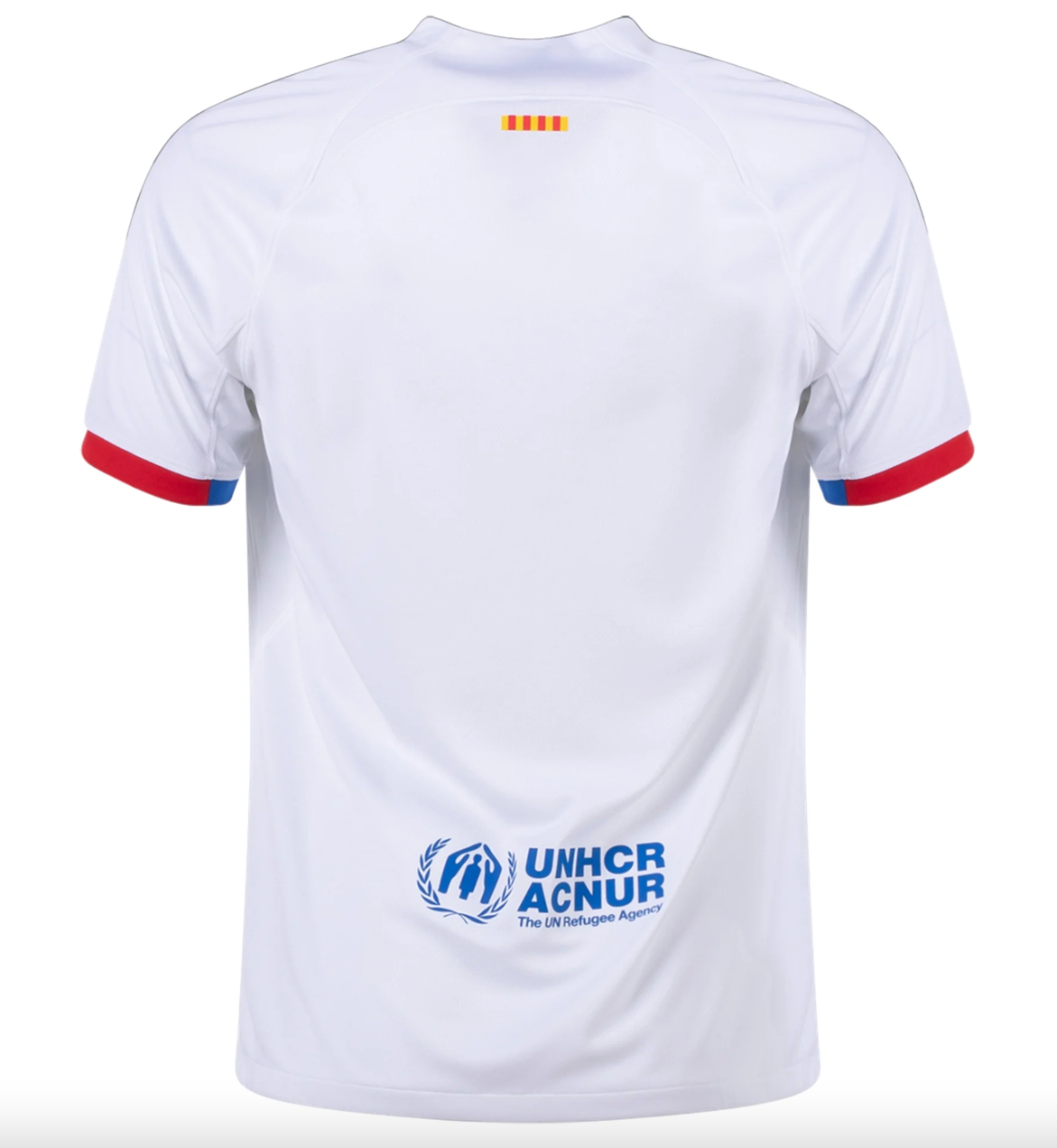 A tribute to the Cruyff era – this new Barcelona away jersey for the 23/24 season uses an all white base with red sleeve cuffs to mimic the many white away jerseys the club wore in the 1970s. Furthermore, the club crest also pulls from the one used in 1978, back to a time when Johan Cruyff captained the club in UEFA Cup final against Aston Villa.