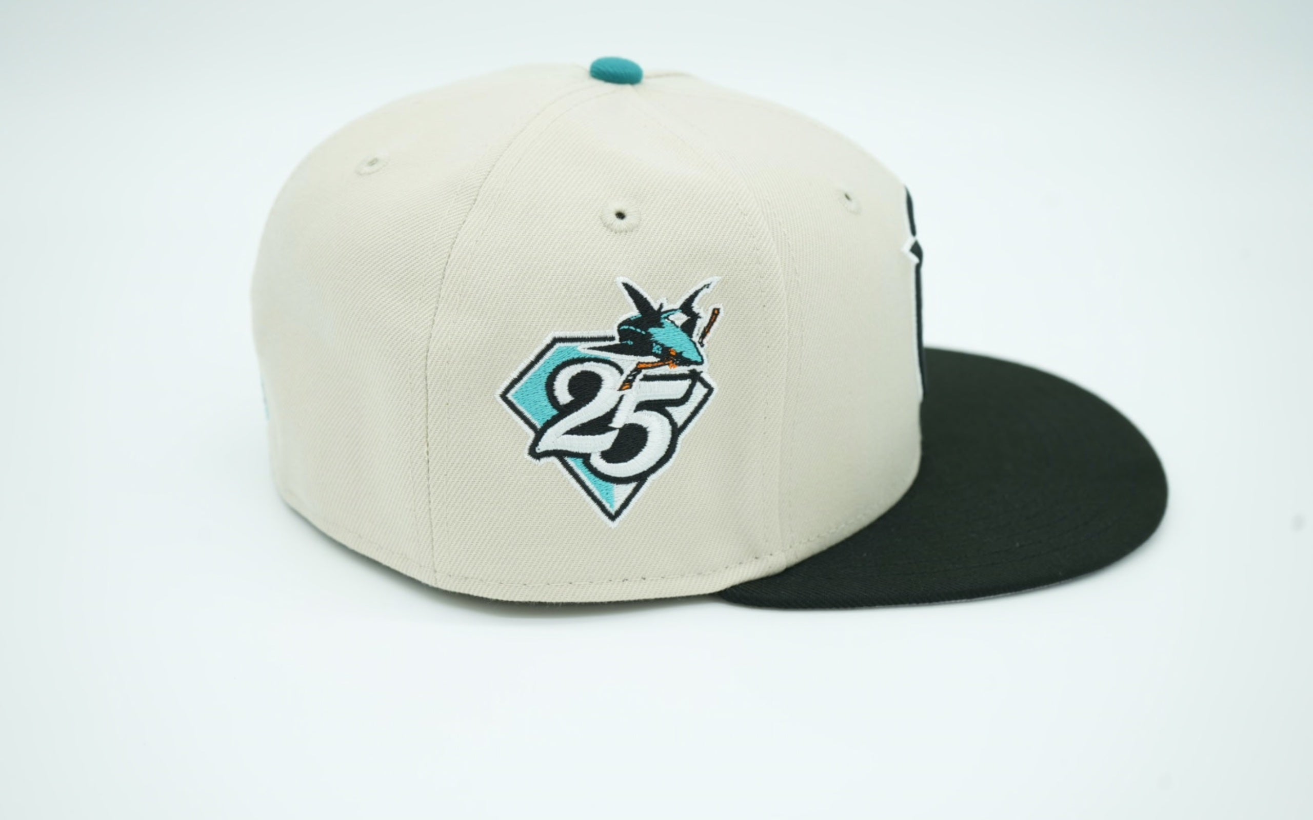 Upgrade your headwear game by grabbing this San Jose Sharks 59FIFTY Fitted Hat from New Era. Highlighting your loyalty to the team will be super easy thanks to the distinctive San Jose Sharks graphics embroidered on the crown, with the 25th Anniversary side patch. Hat is made in China