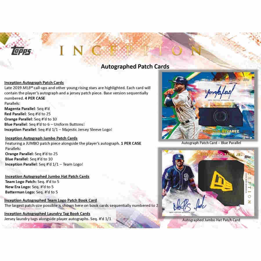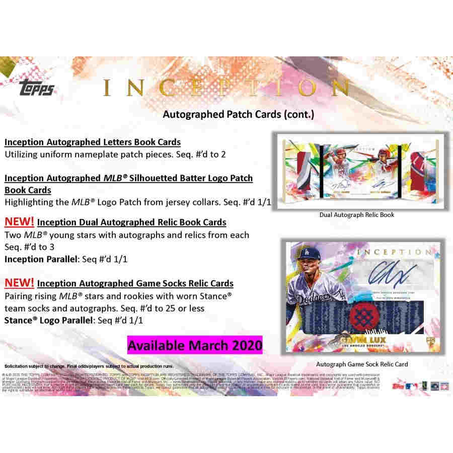 - NEW! Inception Dual Autographed Relic Book Cards - Two young MLB stars with autographs and relics from each! #'d to 3. Look for Inception parallels #'d 1/1