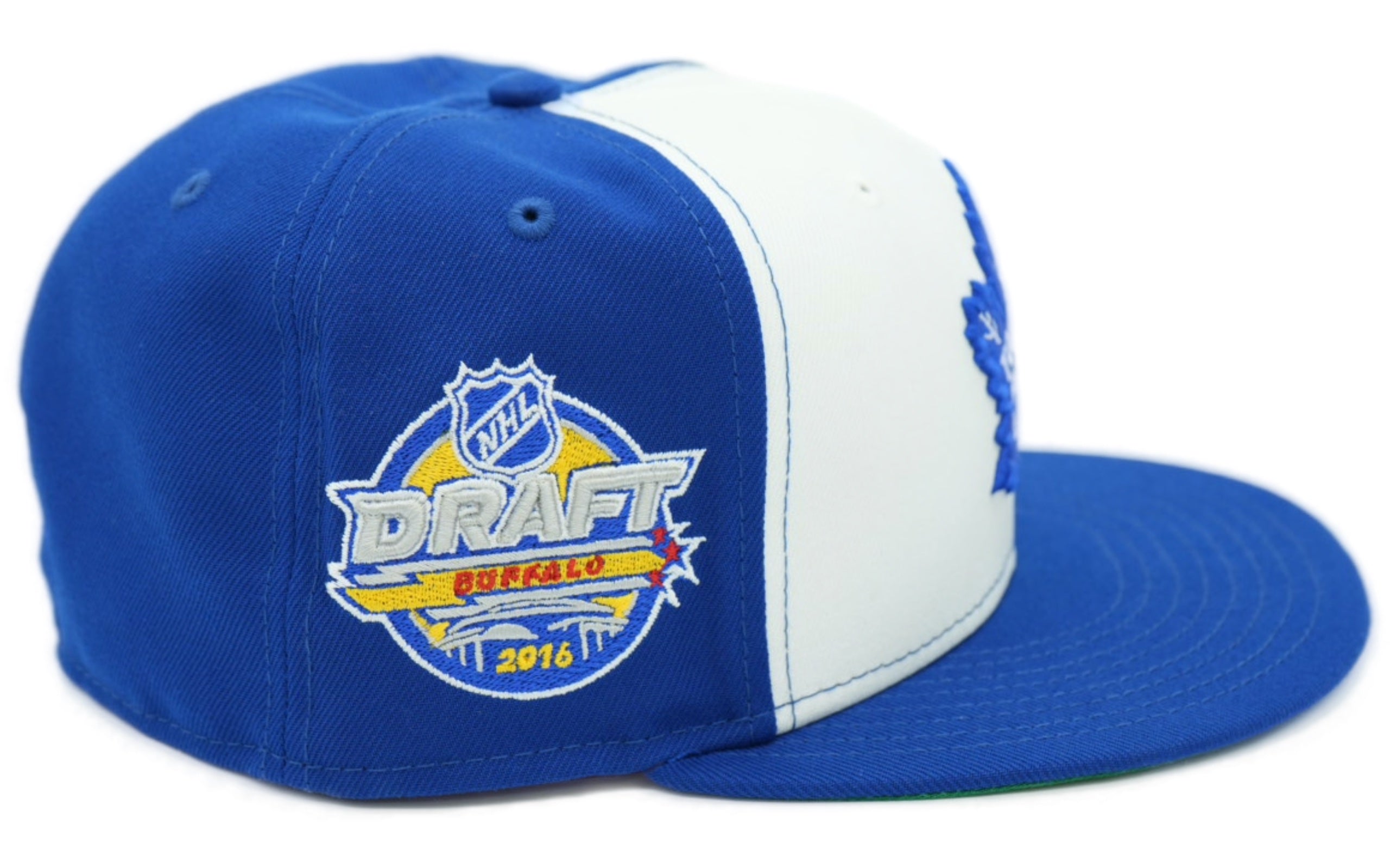 Upgrade your headwear game by grabbing this Toronto Maple Leafs 59FIFTY Fitted Hat from New Era. Highlighting your loyalty to the team will be super easy thanks to the distinctive Toronto Maple Leafs graphics embroidered on the crown, with the 2016 NHL Draft side patch. Hat is made in Bangladesh