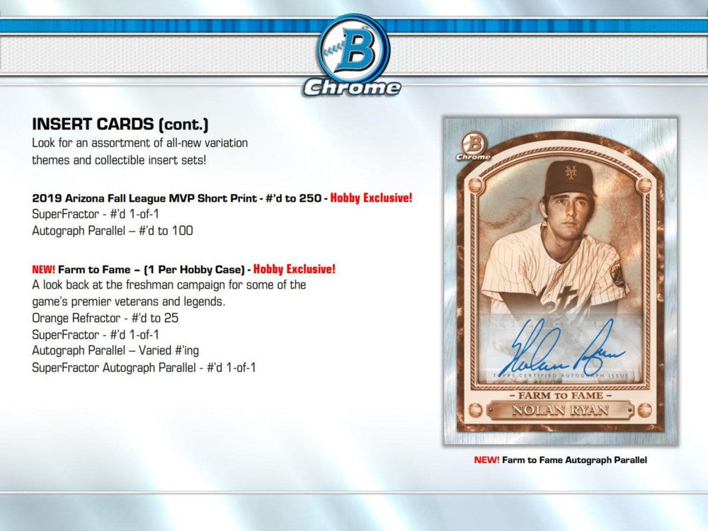 Look for the debut of the all-new Dawn of Glory and Farm to Fame insert sets in 2020 Bowman Chrome!