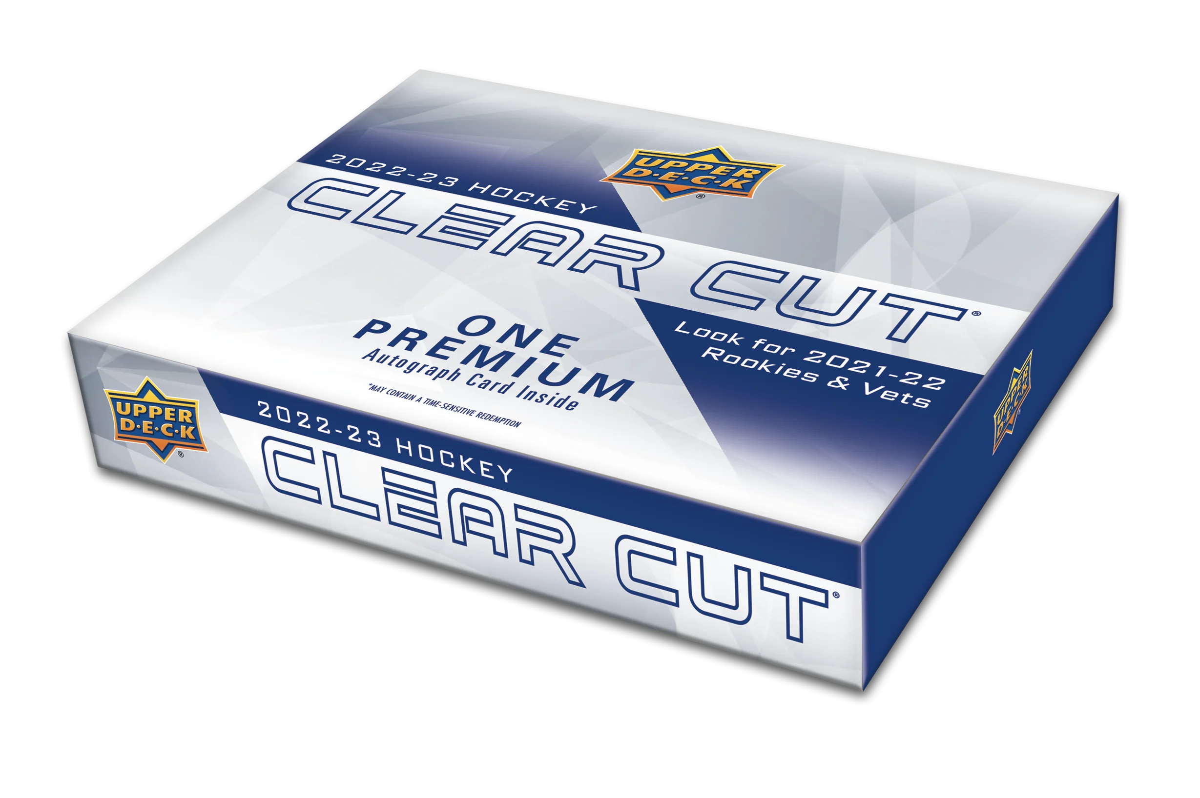 The latest edition of Clear Cut combines the 2021-22 and 2022-23 products. Every box contains either a 2021-22 or a 2022-23 Clear Cut autograph card - sealed in a one-touch - or a redemption for an autograph card from one of the two seasons. All redemption cards are accompanied by a bonus Canvas Rookie Debuts card, also sealed in a one-touch!
