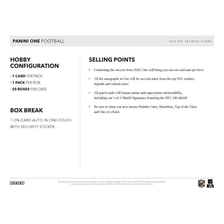 2019 Panini Limited One Football Cards PRODUCT HIGHLIGHTS: