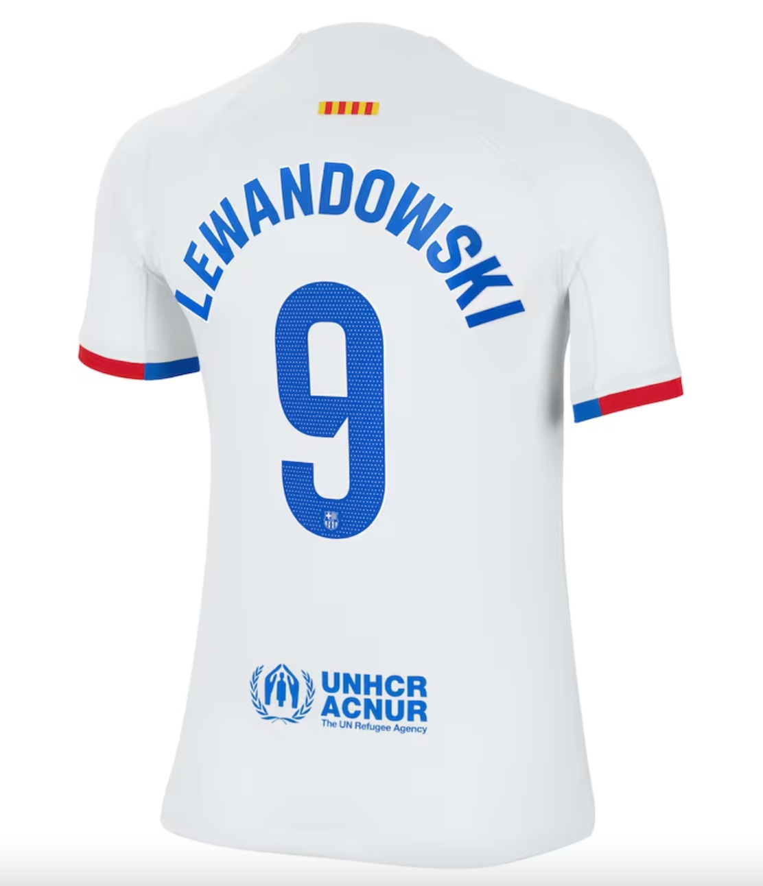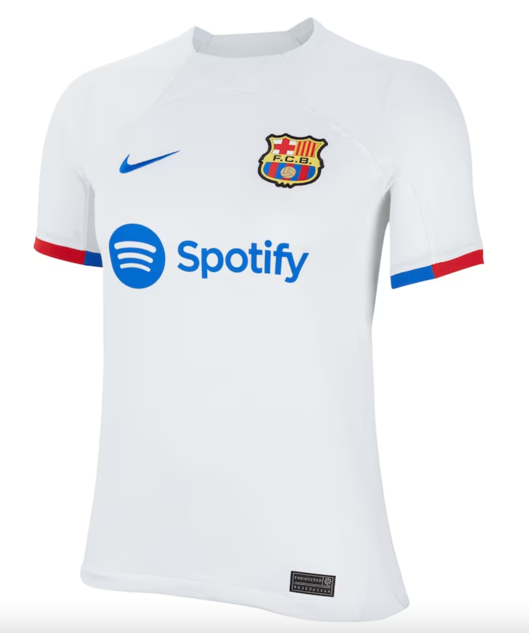 A tribute to the Cruyff era – this new Barcelona away jersey for the 23/24 season uses an all white base with red sleeve cuffs to mimic the many white away jerseys the club wore in the 1970s. Furthermore, the club crest also pulls from the one used in 1978, back to a time when Johan Cruyff captained the club in UEFA Cup final against Aston Villa.
