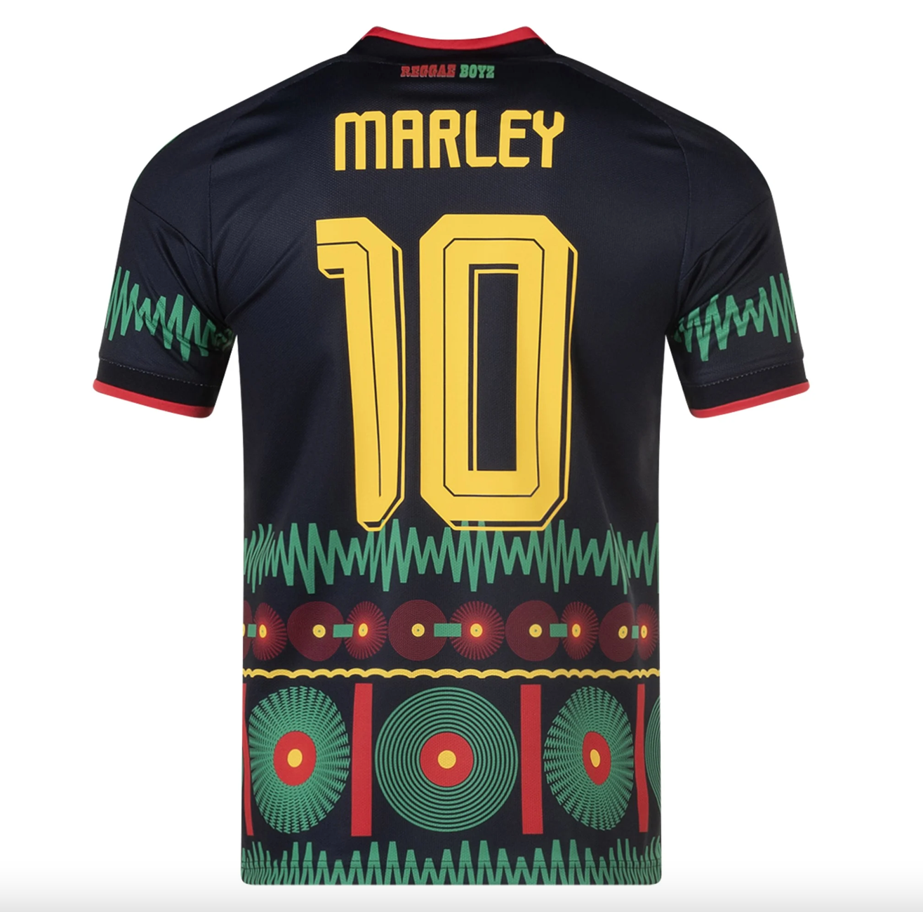 Celebrate Jamaica's iconic football heritage with this striking replica black away jersey. Officially Adidas branded, this jersey combines authentic athletic performance with cultural significance, featuring the legendary Bob Marley connection that makes it a collector's piece. Crafted from premium moisture-wicking fabric, it delivers comfort and breathability whether you're cheering from the stands or wearing it as a statement piece. The classic black colorway with traditional Jamaican football styling ensures you stand out with style and pride. Perfect for fans, collectors, and anyone who appreciates the intersection of sport and cultural icon.