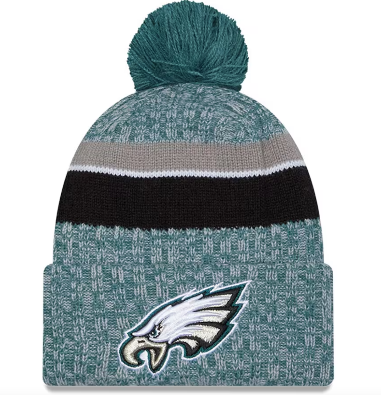 Philadelphia Eagles New Era 2023 Sideline Cuffed Knit Hat With Pom