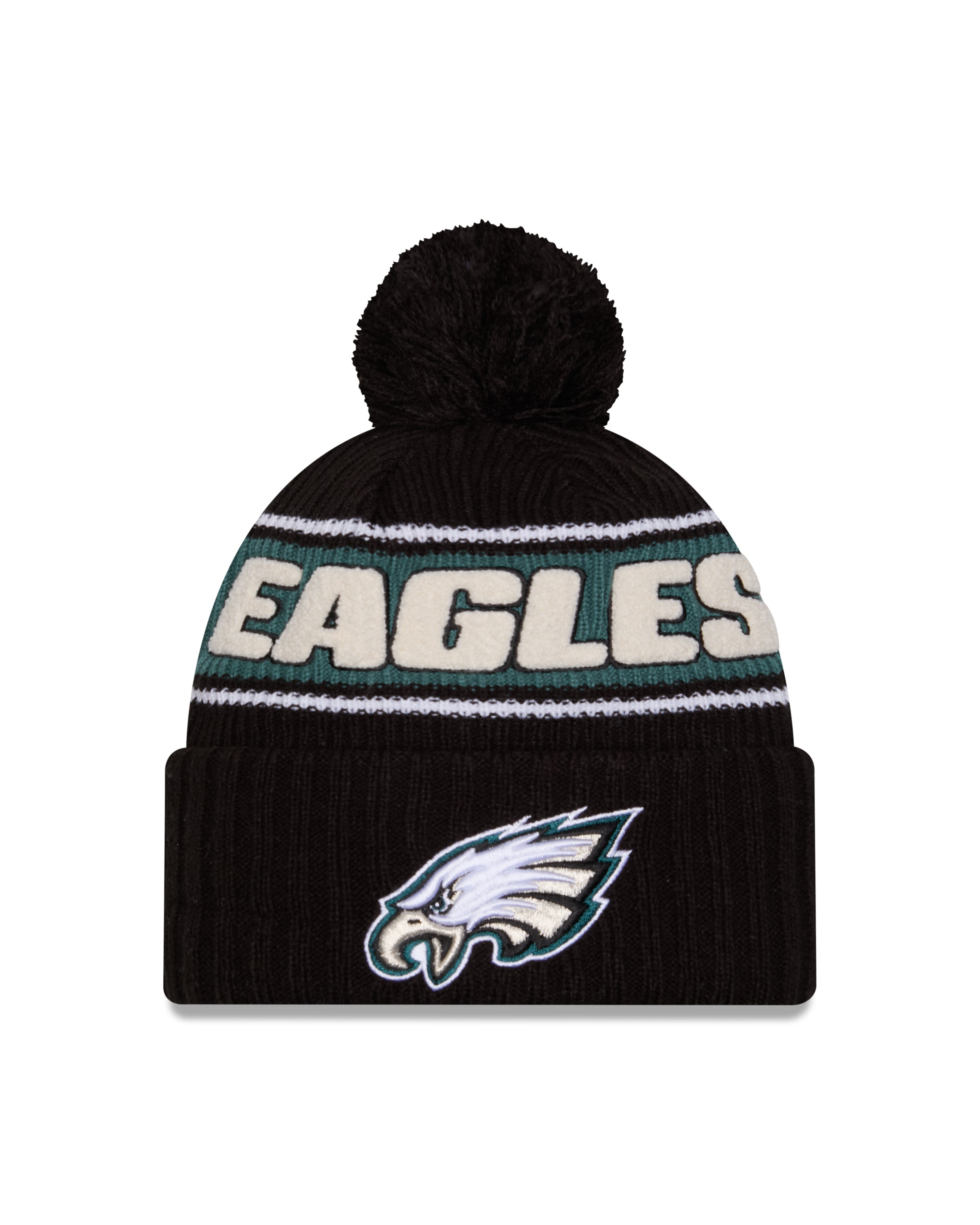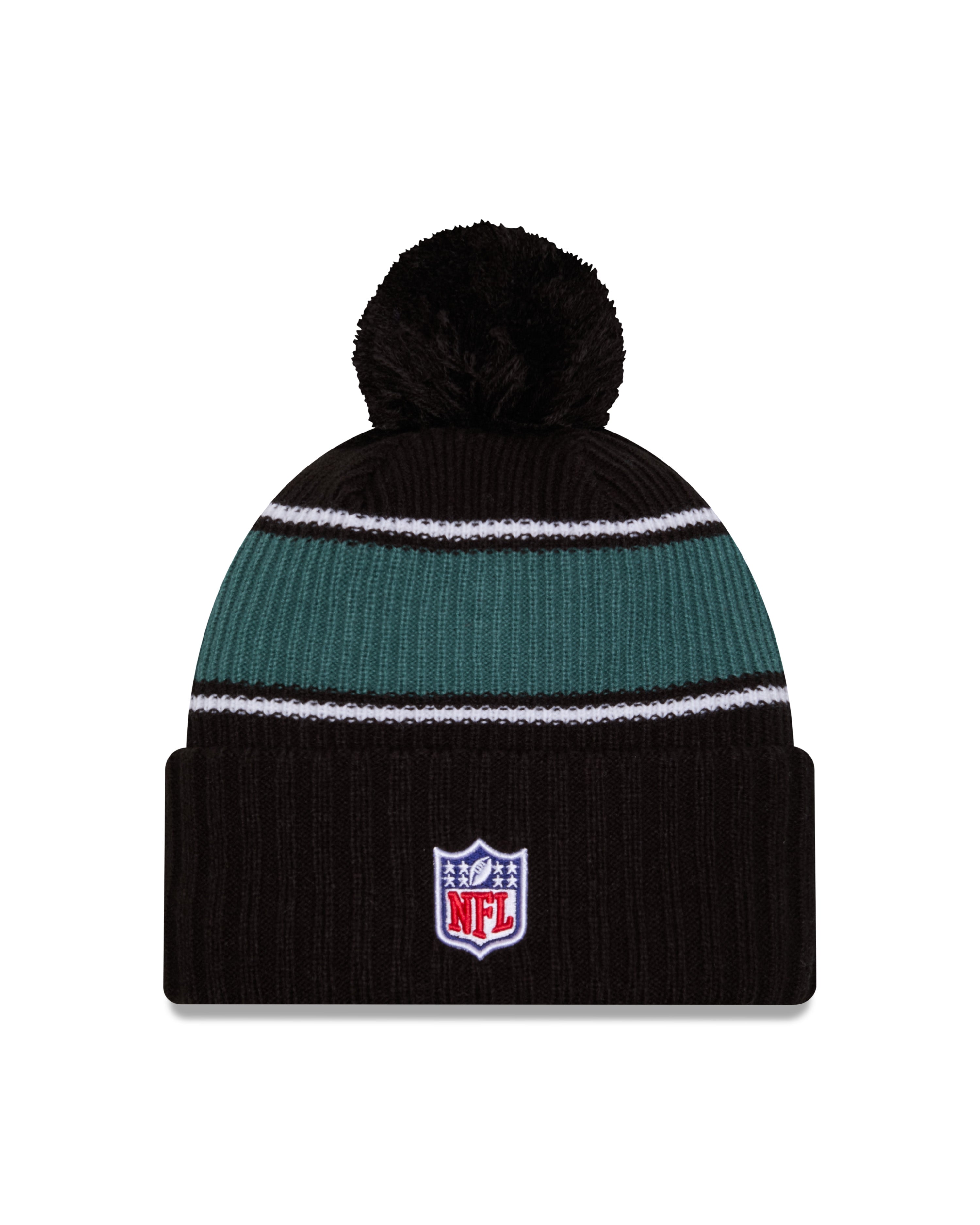Philadelphia Eagles New Era 2024 Sideline Cuffed Knit Hat With Pom Black