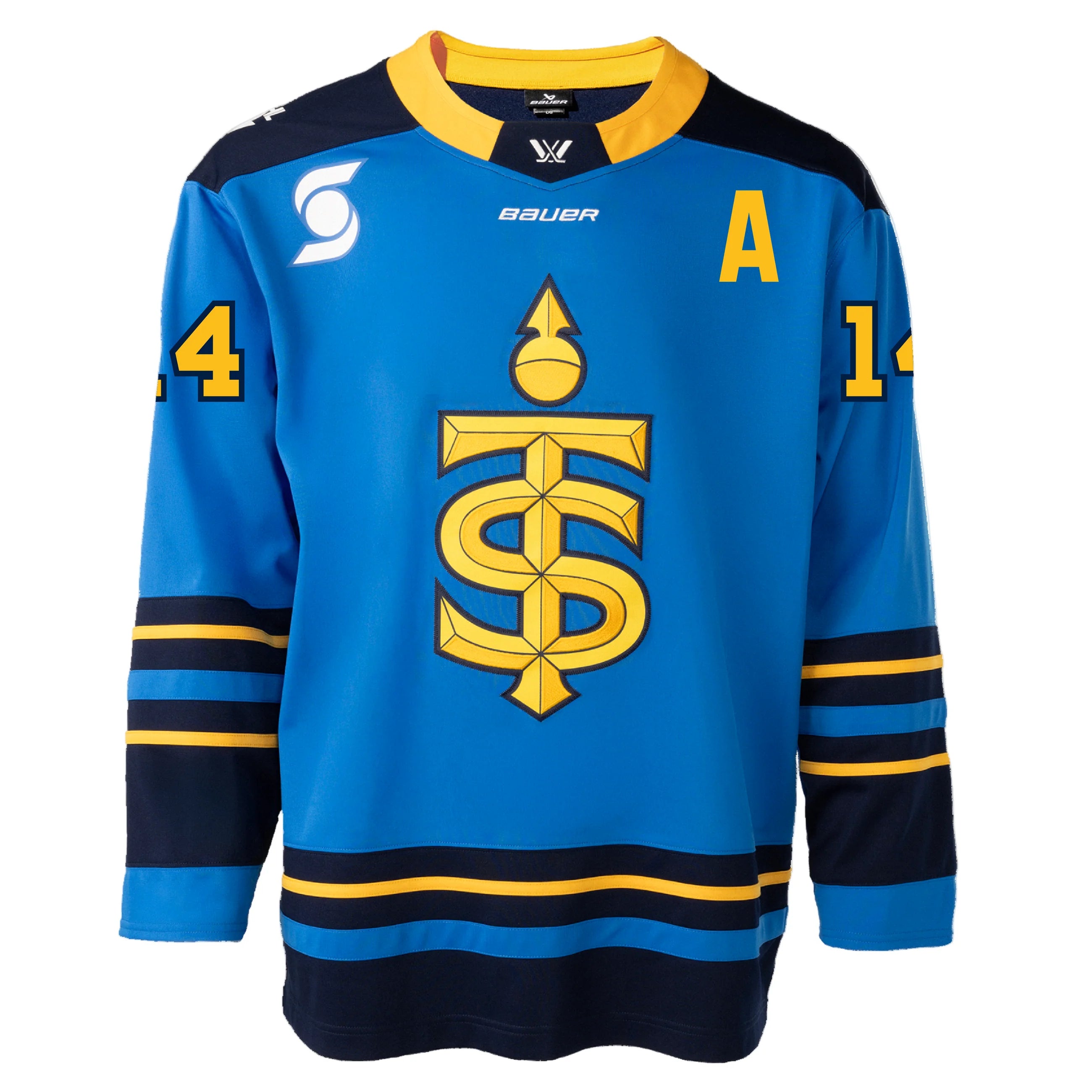 Show your game day spirit and unite with other Renata Fast fans! FAST, 14 and a captain's letter will be stitched directly onto the jersey. Built for durability and comfort, the jersey is made with high-quality twill fabric and features ventilating mesh under-sleeve panels. It replicates the designs worn on home ice with an embroidered team crest and printed graphics featuring the same colors and designs worn by the team.